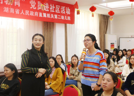 2018年11月4日上午,湖南省人民政府直属机关第二幼儿院早教中心走进井湾子街道井湘社区开展“家有熊孩儿,别抓狂”育儿专题公益讲座,与家长们共同探讨和分享育儿话题。来自社区近50名家长参与此次活动。